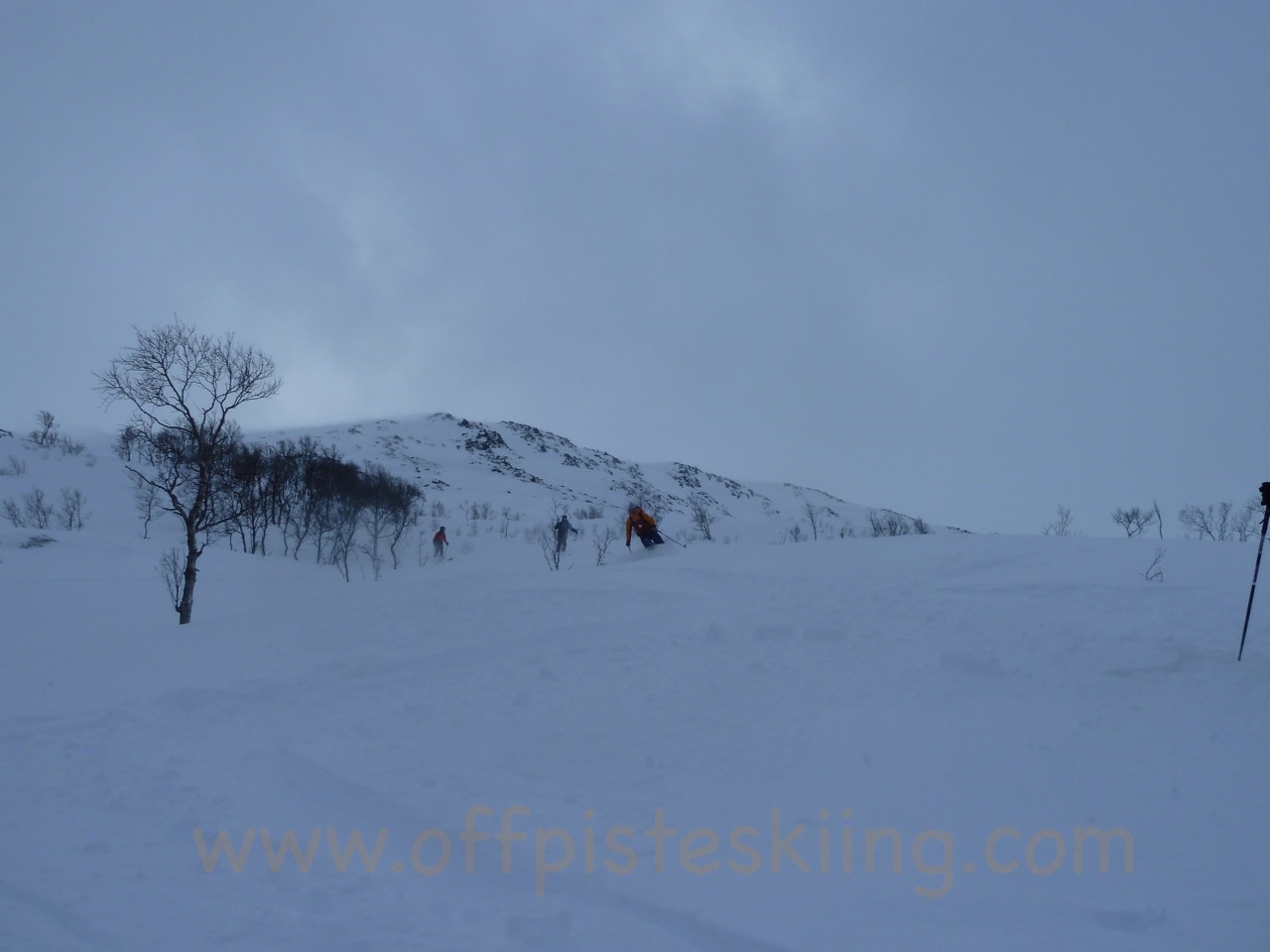 The official day 1 of the trip dawned cloudy and snowy with a middling forecast so we headed for a tree and gully option which gave 3 fun descents: