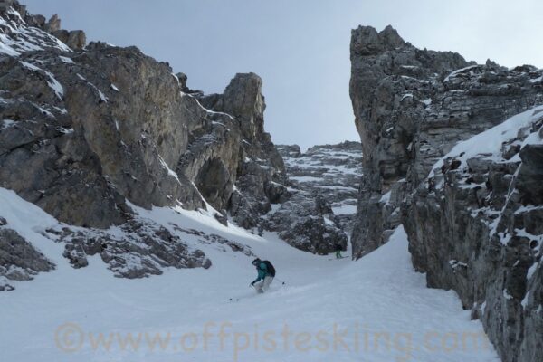 On day 2 we went for a ‘leg-stretcher’ out behind Courchevel to the mighty Breche Portetta – no traverse this time, but a visit to this stunning collection of rocky spires before descending back down to Courchevel, with good cold snow followed by some character building heaviness as the temperatures soared…